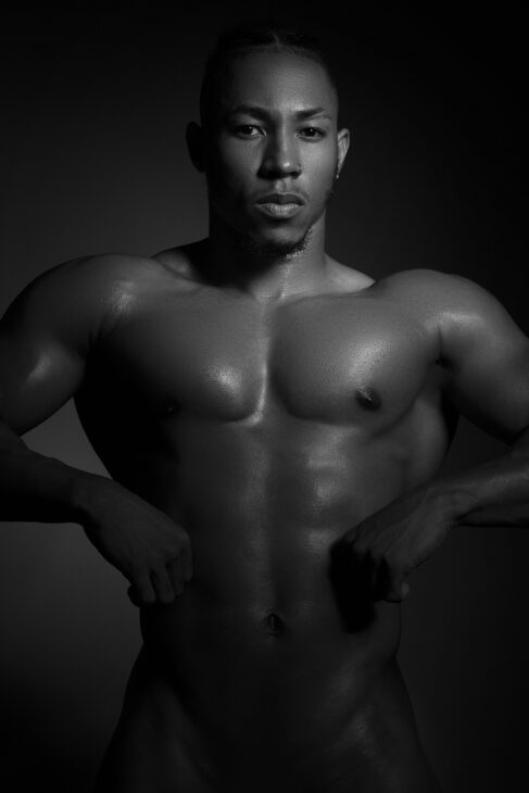 El cuerpo aparece como objeto de observación. No se dramatiza ni se estiliza más allá de lo necesario. La musculatura, la postura y la piel se muestran con precisión en esta sesión fotográfica de estudio junto al modelo fitness panameño Luis Mendoza, quien poco sonríe a la cámara, pero encuentra su propia manera de dejarse conocer.